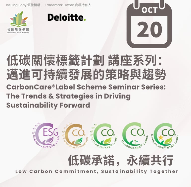 本學院與德勤中國合作,舉辦「CarbonCare® Label 低碳關懷標籤」計劃,並擔任頒發機構,目標表彰在碳管理和可持續發展方面有卓越表現的企業及機構。