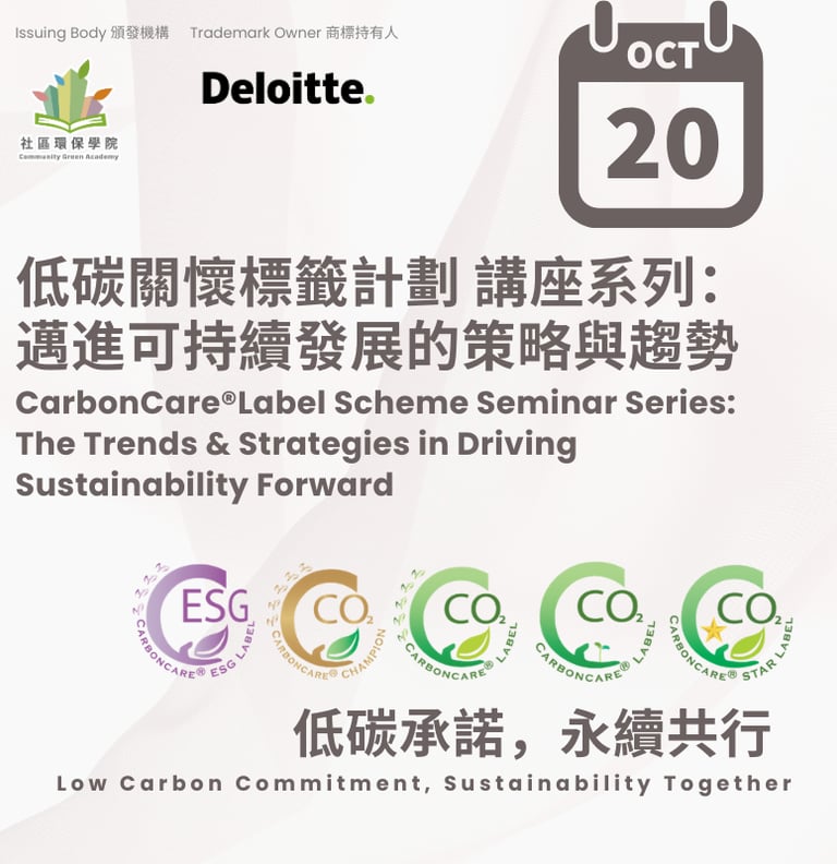 The Academy collaborates with Deloitte China to launch the “Carbon®Care Label Scheme" and serves as the issuing body. This initiative aims to recognize businesses and organizations that demonstrate outstanding performance in carbon management and sustainable development.
